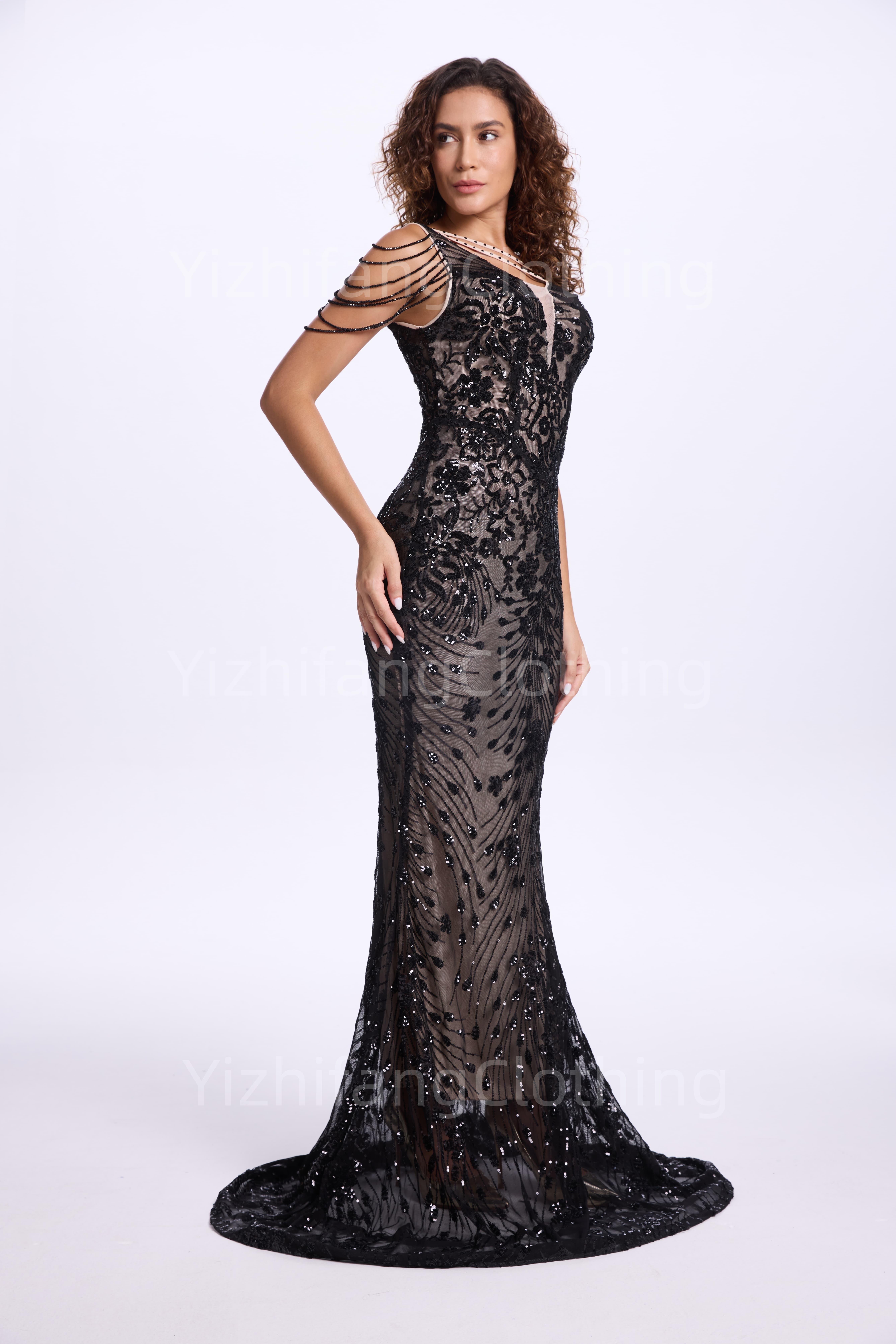Bead style Elegant European and American Style Evening Gown for Women - Sexy Dress