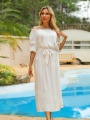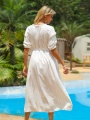 Women'S Casual A-Line Dress with Rhinestone Detail - Long Sleeve, Round Neck, Solid Color, All-Season Comfort, Perfect for Beach or Summer Outings, Beach Dress