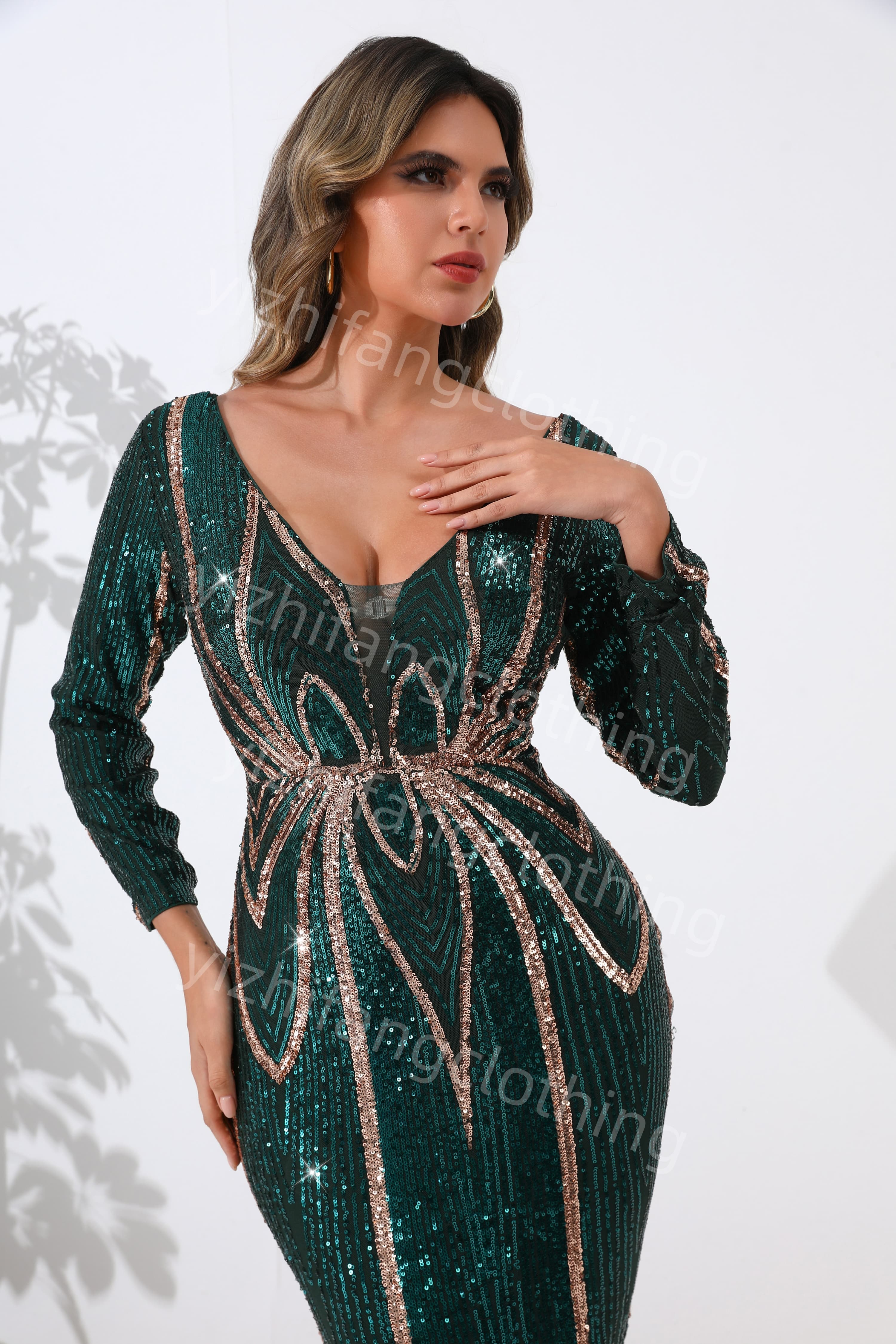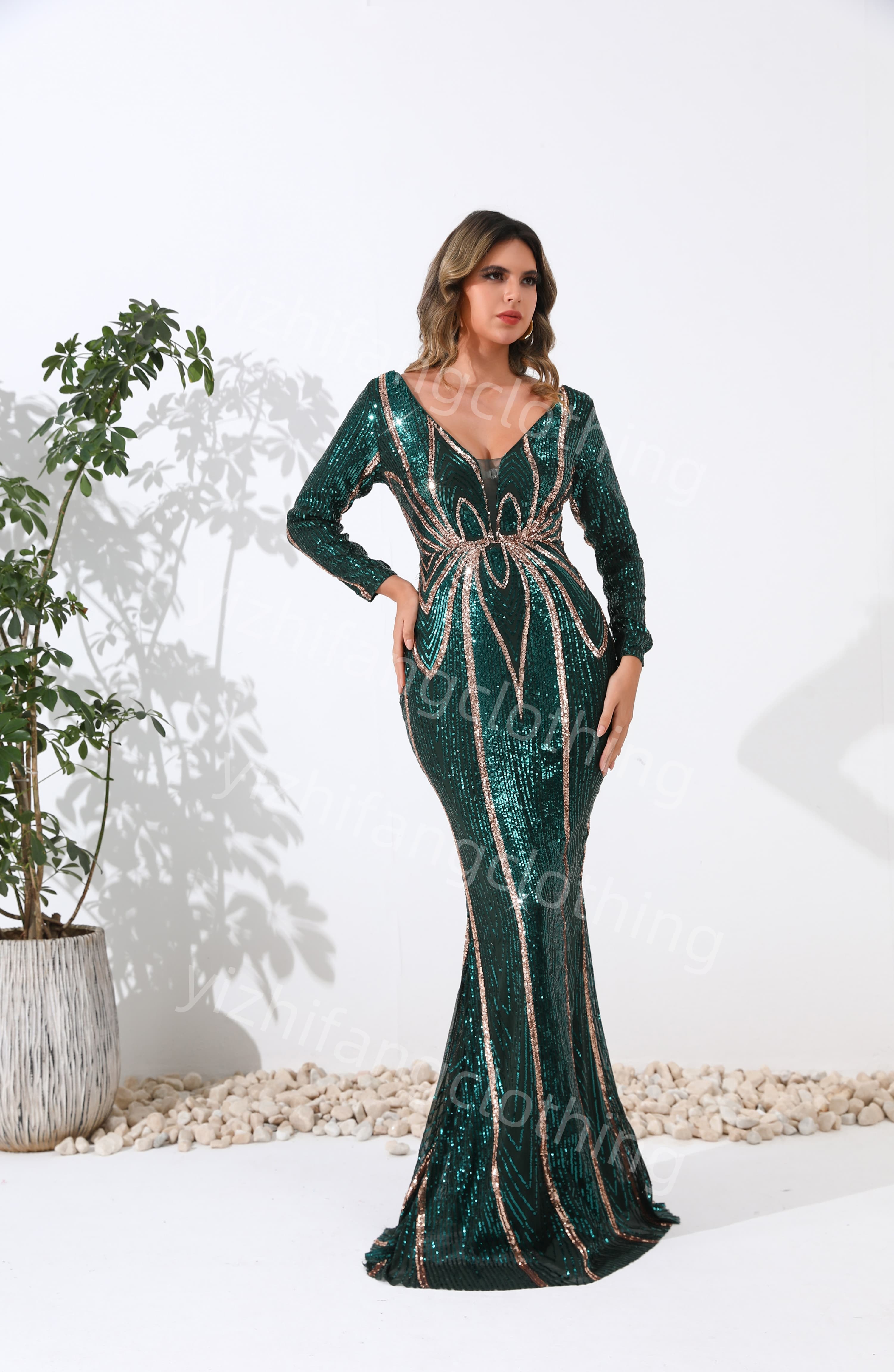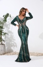 Elegant European "sequin fabric" and American Style Evening Gown for Women - Sexy Dress