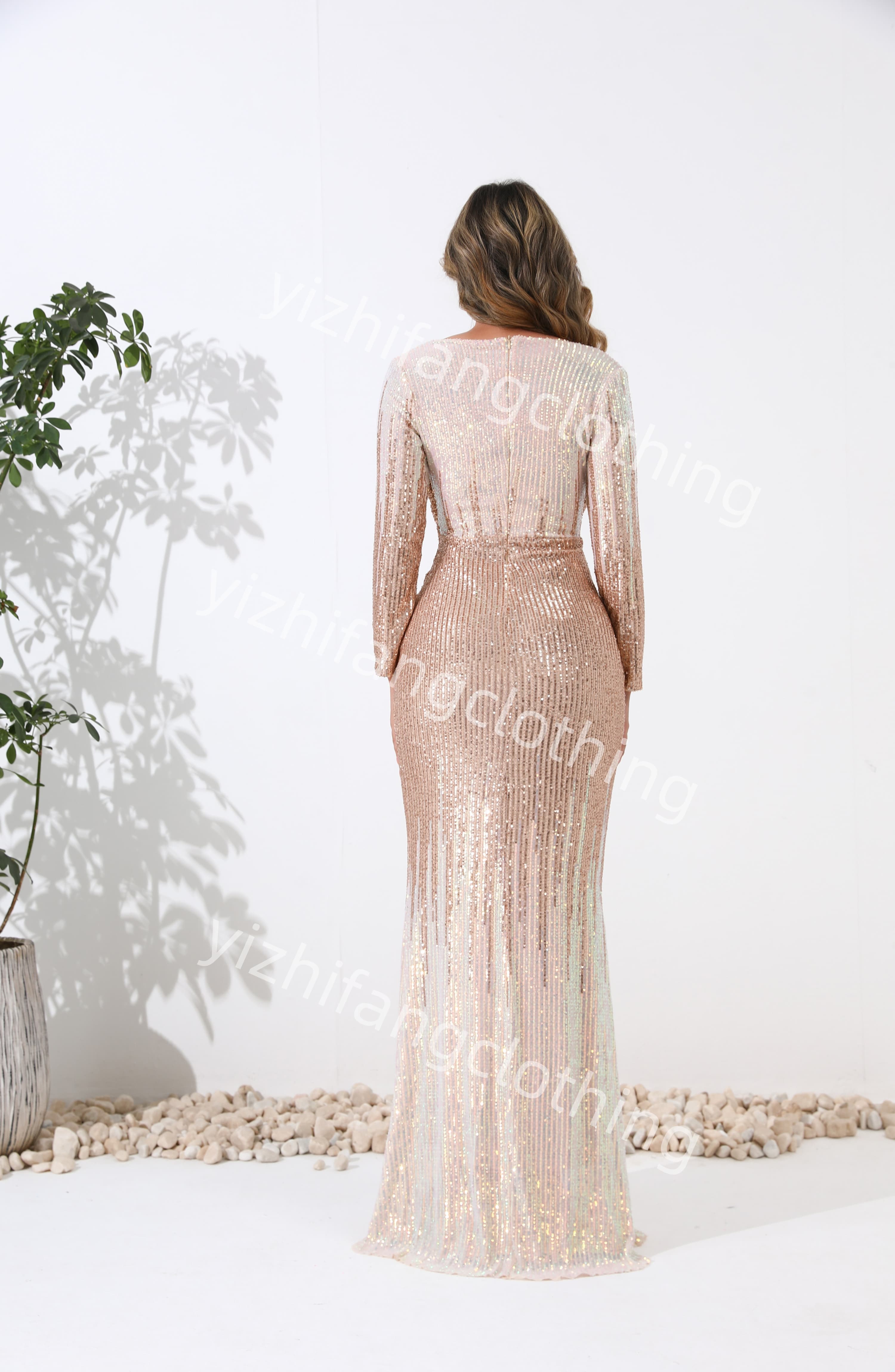 Elegant "sequin fabric" European and American Style Evening Gown for Women - Sexy Dress